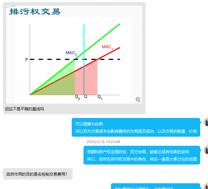 环境经济学涉及到较多理论推导及分析,因此需要大量板书。受到网络课程限制,课程主要采用屏幕书写方式,进行板书。该形式虽然与板书存在差异,但是总体上弥补了学生知识上的不足。