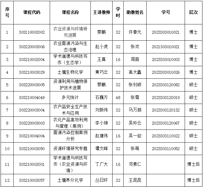 根据《91直播 研究生“三助一辅”实施办法(试行)》(校发〔2019〕56号)文件精神,经学生申请,任课教师推荐,91直播 审核,拟聘用以下12名研究生为2023-2024-1学期研究生课程助教,名单如下: