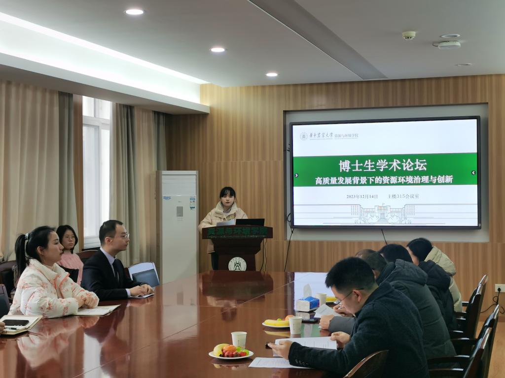 12月14日,91直播 2023年博士生学术论坛在91直播 楼204、主楼315成功举办,24名博士生围绕“高质量发展背景下的资源环境治理与创新”主题进行学术汇报展示,姜存仓、周云、王军光等9位老师应邀担任点评教师,百余名研究生到场参加会议。