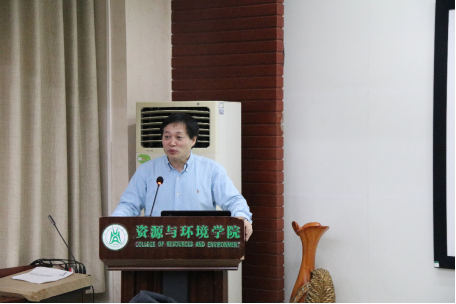 田汉勤教授在开场时简要介绍了当今全球气候变化以及气候变化对生态系统和人类社会的影响,然后和大家分享了自己的主要研究成果——DLEM模型(Dynamic Land Ecosystem Model),该模型运用生态系统过程模型和生态大数据方法,并结合地面观测和卫星遥感技术,主要应用于全球变化与陆地系统综合集成模拟,通过模拟来理解和定量分析全球变化于生态系统的相互作用,具体包括气候、土地利用/土地覆盖变化等领域。接下来,田汉勤教授举出碳氮循环、水变化、生态系统等实际例子,综合运用大量图表,来描述和预测未来的全球变化与生态系统的相互作用及关系。田汉勤教授所做的项目范围宽、尺度大、领域广、信息量丰富,且极具前瞻性,富有应用价值,在场的师生们表示十分陶醉。
