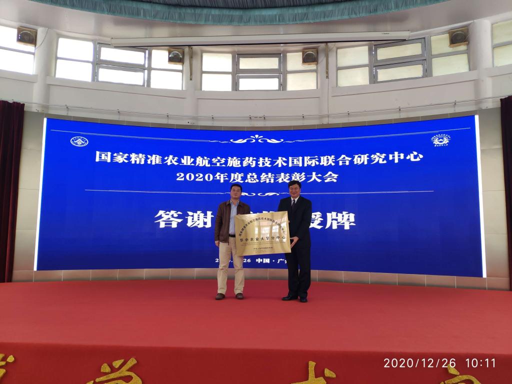2020年12月26日,国家精准农业航空施药技术国际联合研究中心年度工作汇报暨表彰大会于华南农业大学召开,91直播 91直播 张建副教授,植物科学技术91直播 宋鹏副教授受邀参加此次会议。