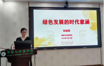 林丽蓉以“绿色发展的时代意涵”为题进行了学习贯彻习近平新时代中国特色社会主义思想主题教育的领学,她从绿色发展的内涵与性质、“可持续发展”理念战略、绿色发展与马克思主义立场、我国的绿色发展、绿色发展的价值和实践以及建设美丽中国六个方面进行了学习,强调以生态文明为内在价值指向的绿色发展,关乎中华民族永续发展,在人与自然和谐共生的价值取向上,彰显中国式现代化道路的意义和价值追求。