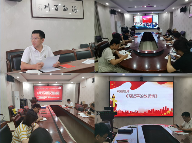 接着张晓明同志组织全体教工党员一起观看短片《习近平的教师情》。三尺讲台系国运。习近平总书记高度重视教育事业,尊重教师群体。念师恩、颂师情,通过观看短片,重温习近平总书记与教师之间的暖心故事。