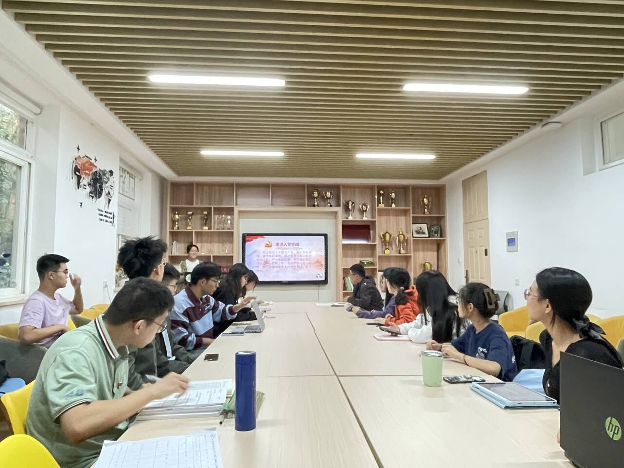 10月24日下午,91直播 本科生第一党支部在主楼240会议室开展10月主题党日活动。支部组织委员毛欣悦主持会议,全体支部党员参与会议,并畅谈了学习体会与思考。