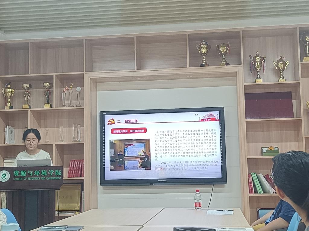 最后,毛欣悦同志总结了上半年第一党支部的党员发展情况、日常工作与主题党日活动情况。支部秉持着抓好廉政教育,严肃党风党纪的初心,坚持抓好理论学习,提升党员政治素养,注重党员的管理,培养党员先锋。并总结了支部工作的不足和下一步工作规划。支部书记许泽远老师也对党支部提及了相关建议,希望支部党员可以加大理论宣传力度、推送优秀党员代表,发挥带头作用,并提及未来支部书记这一职责将由韩峥老师接管。