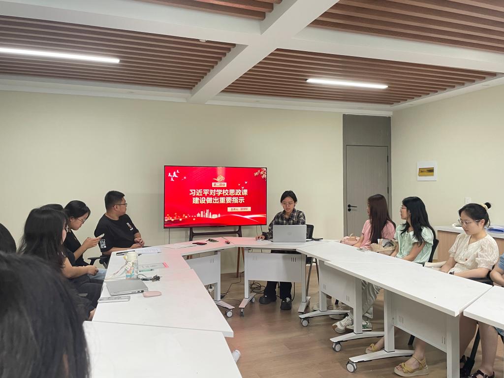顾宇轩同志以5月11日在北京召开的新时代学校思政课建设推进会为切入点,带领支部党员学习了习近平总书记对学校思政课建设做出重要指示的相关内容。她介绍到,习近平总书记强调,各级党委(党组)要把思政课建设摆上重要议程,各级各类学校要自觉担起主体责任,不断开创新时代思政教育新局面。
