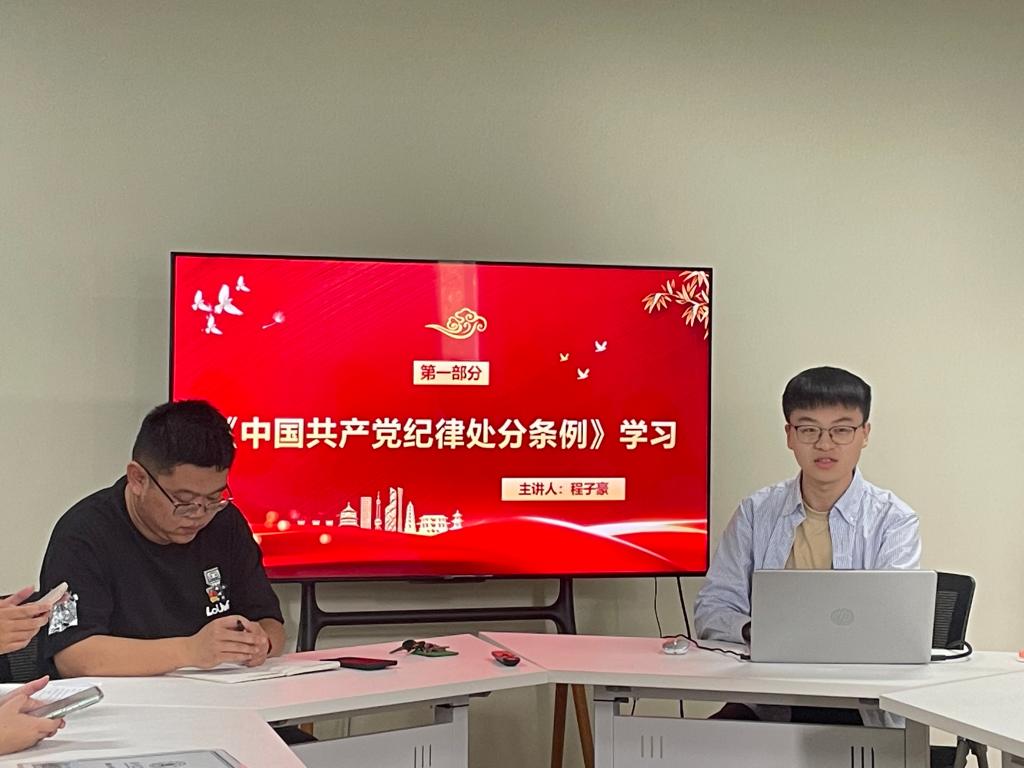 程子豪同志围绕《中国共产党纪律处分条例》,从对违反政治纪律行为的处分、对违反组织纪律行为的处分、对违反廉洁纪律行为的处分三个方面进行领学。他从纪律处分条例新增内容和与当代学生的学习和生活相近的角度出发,节选部分条例进行讲解。