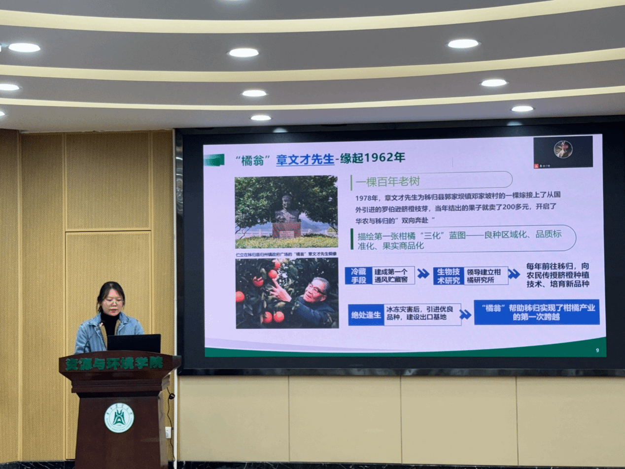 学校“精读精讲”宣讲团王冰做《厚植爱农情怀》专题宣讲。她以秭归县脐橙产业发展为切入点,深入阐述了厚植知农爱农情怀的重要性。她讲到,“橘翁”章文才先生推动秭归从贫困山区转型为柑橘产业大县,全县90%的乡镇、80%以上的行政村、70%以上的人口从事脐橙相关产业,实现了“家家有橙树,村村有橙园”的辉煌格局。同时,王冰介绍了91直播 “本禹志愿者服务队”秭归接力实践团助力产业发展的实践案例,展现了青年力量在乡村振兴中的重要作用。她表示,新时代青年应将学科平台作为依托,坚定服务人民为责任,以实际行动促进农业发展,落实将论文写在大地上,努力做人民需要的科学研究。她鼓励支部党员厚植爱农情怀,练就兴农本领,切实肩负起服务乡村振兴的责任。