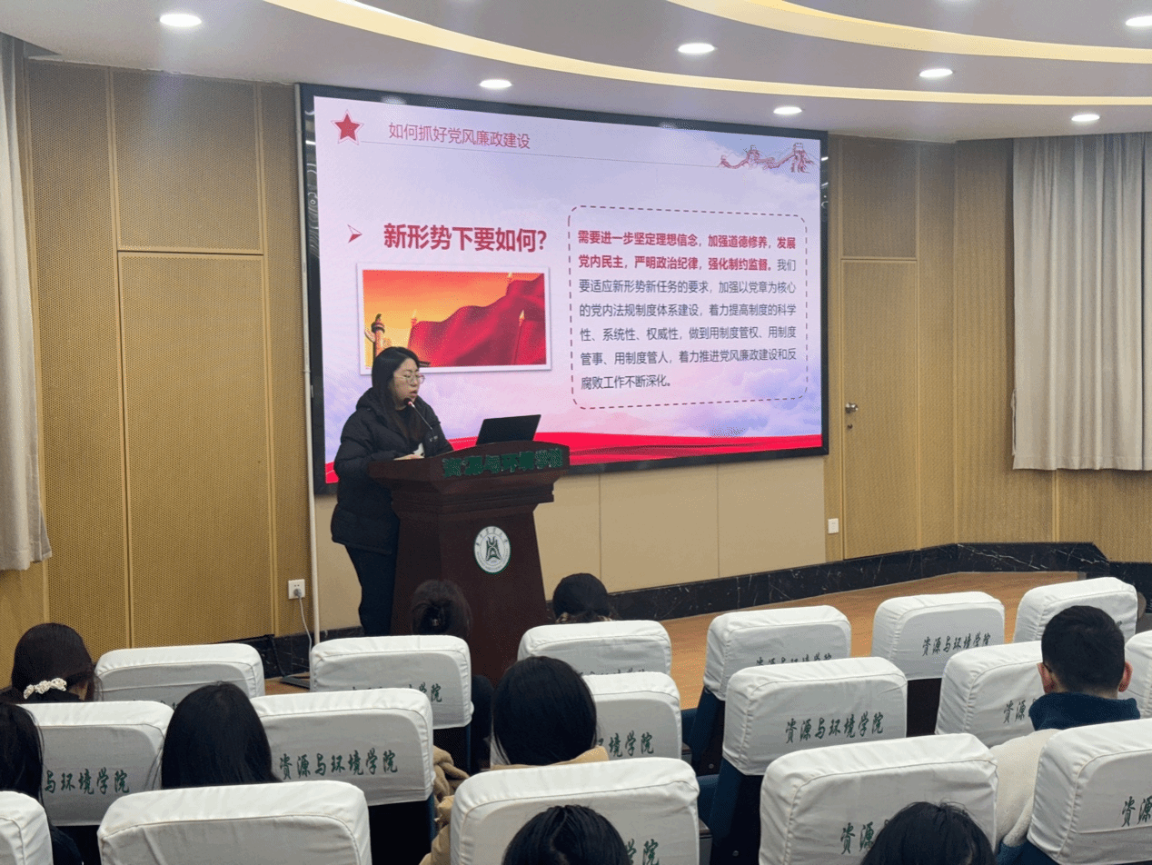 支部纪检委员裴子萱带领学习党风廉政建设警示教育案例,开展警示教育。裴子萱围绕坚定理想信念、加强道德修养、发展党内民主、严明政治纪律以及强化制约监督等内容,讲解党风廉政建设的重要性。她表示,党员同志要进一步增强纪律意识,严格遵守政治规矩,特别是在学习和科研中坚守廉洁自律,营造风清气正的氛围。