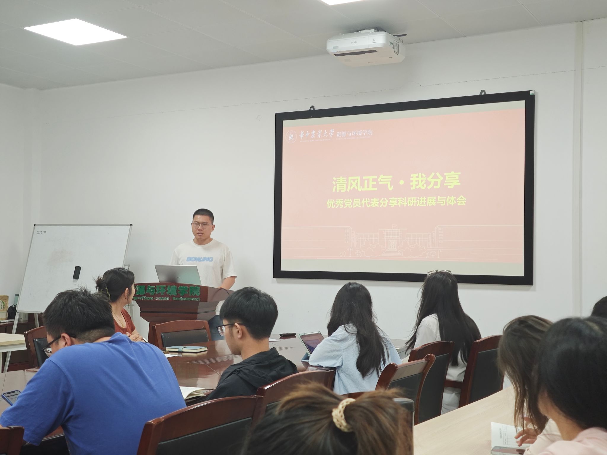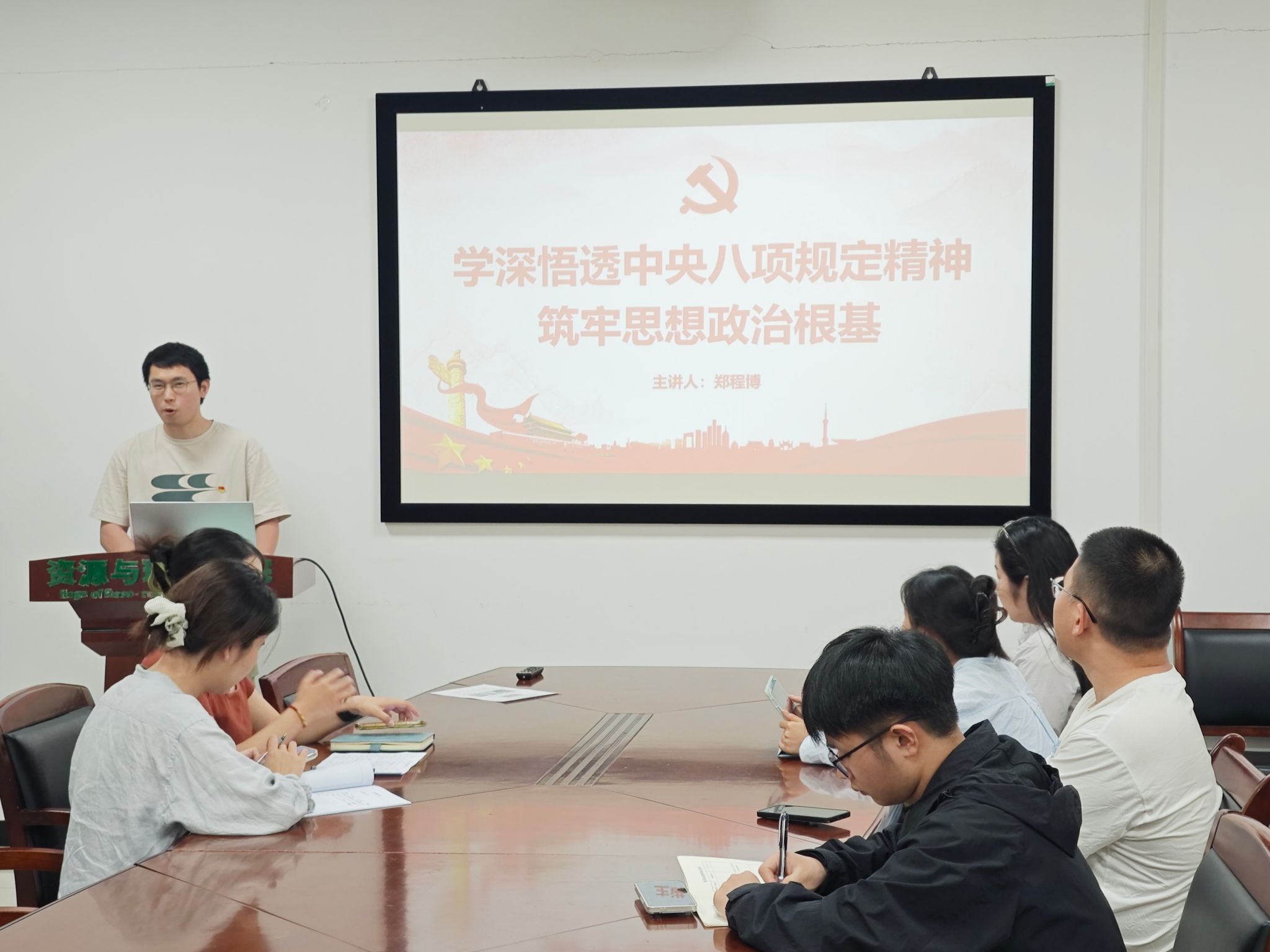 活动最后,张晓明老师总结强调,中央八项规定精神是新时代党员作风建设的“硬标尺”,研究生党员要将纪律要求融入科研学习,坚守学术诚信、反对形式主义。他肯定“科研分享”机制是党建与科研融合的有益探索,寄语全体党员以学铸魂、以行践诺,在水土保持领域锤炼过硬本领,以实际行动践行新时代青年党员的使命担当。