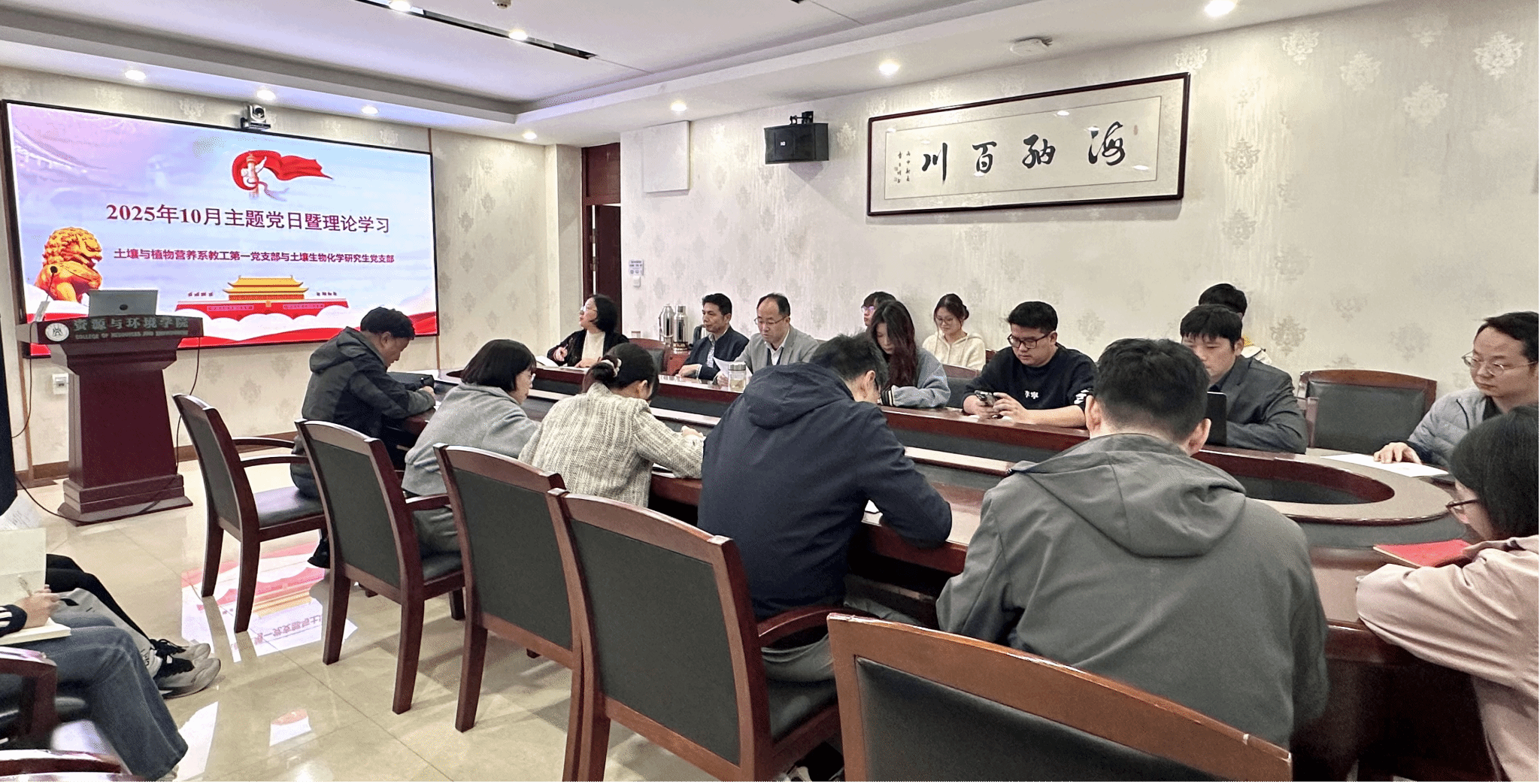 10月31日上午,土壤与植物营养系教工第一党支部与土壤生物化学研究生党支部在91直播 楼204会议室联合开展10月主题党日。支部全体党员及土壤学科非党员教师参加理论学习,会议由土壤与植物营养系教工第一党支部书记戴珂主持。