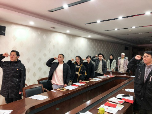 首先郭振勇同志带领大家重温入党誓词,学习党章中关于党员发展的相关规定,为积极分子中对党员发展流程不明晰之处进行解答,强调:党员和入党积极分子应了解党员发展的每一个过程。
