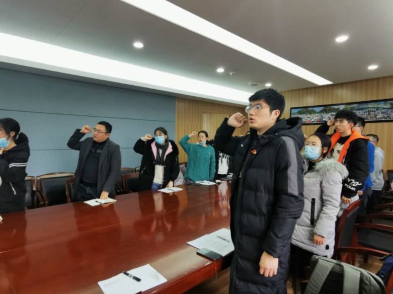 在组织委员谢天同志的带领下,全体党员同志重温入党誓词,铿锵有力的声音传达出作为共产党员的自豪感,坚定入党初心,继续前进。
