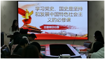 “坚持走自己的路,走中国特色社会主义道路是关键。”郑文婷同志则分享了对《学习党史、国史是坚持和发展中国特色社会主义的必修课》的理解,带领党员重温新民主主义革命、社会改造、改革开放三大重要历史时期。