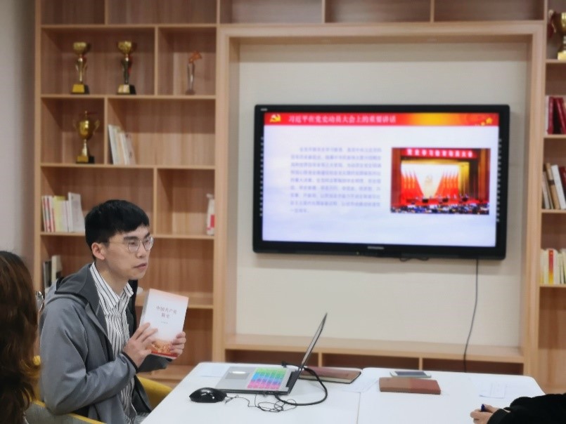 随后,支部书记韩鹏飞通过领学习近平总书记在党史学习教育动员大会上的重要讲话精神和陈宝生同志在教育部党史学习教育动员大会上的讲话精神,强调关于开展党史学习教育的重大意义,指出当下我们为什么要学习党史、学什么和怎么学。支部新接收的预备党员王军同志联系自身的入党动机、聚焦当下热点谈到,学史明理,学史增信,学史崇德,学史力行,百年恰是风华正茂,百年仍需风雨兼程,在建党100周年的契机,全国上下开展党史学习教育十分必要。入党积极分子张蓓认为,作为青年的我们,更是要强化自身的理论武装,坚定理想信念,勇于担当作为,扎实落实党史学习。
