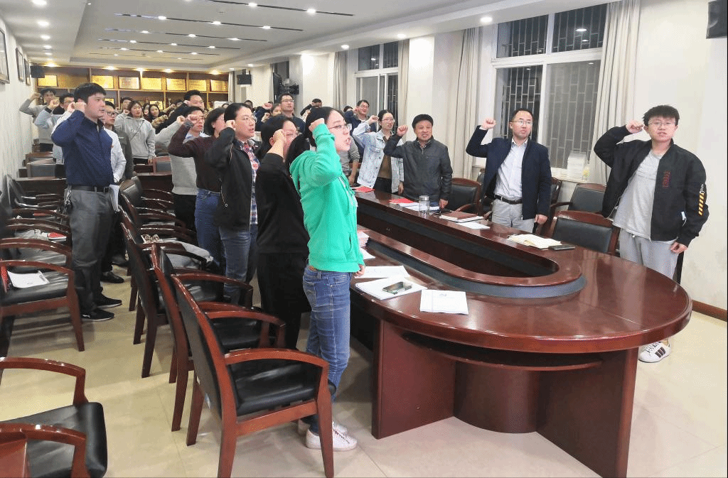 会上,全体党员在研究生党支部邴子麟的带领下重温入党誓词,声声誓词庄严而饱含深情。
