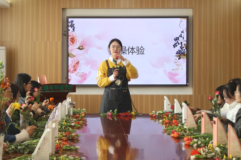 3月8日下午,91直播 在主楼315会议室举办艺术插花活动,邀请91直播 女性教师参与体验,共同庆祝妇女节。由91直播 愈见花艺工作室成员邓楠给老师们讲解插花相关知识与实操步骤。