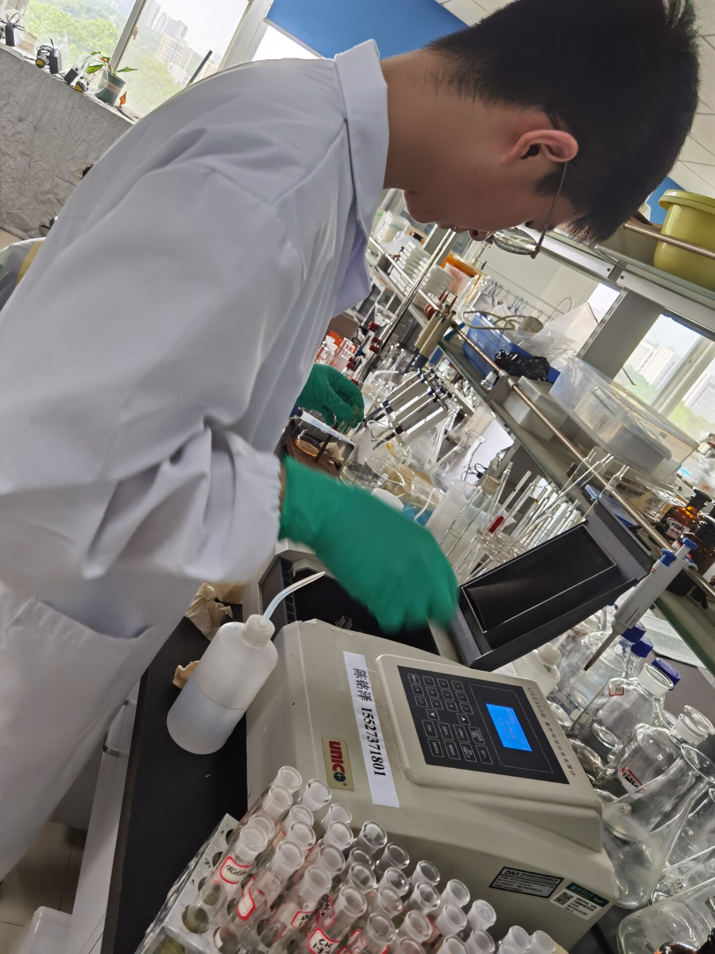 7月8日上午九点,小组成员在91直播 桃园食堂门前集合,一同前往生猪健康养殖协同创新中心实验室对前几日在东湖不同水域所采水样进行氨氮和磷的含量以及水质COD(化学需氧量),主要目的在于根据上述综合数据反映出东湖水体的有机物污染程度。经过一天的测定,东湖各水域水质对比情况已初见雏形,实验数据将经过进一步的处理比较得出最终结果。同日,小组成员根据几天的实际情况,对线上调研问卷进行了微调,完成后已经正式发布并开始了数据整理与收集。