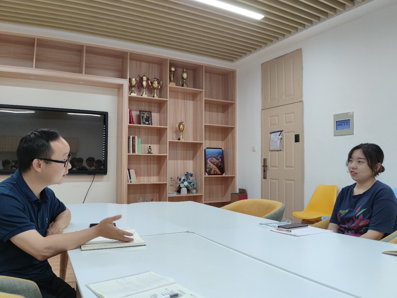 对于同学们的学业问题,周云老师非常关心,了解到朱筱曦同学因实验不顺而困扰时,周云老师与该同学进行学术探讨,从新的角度提出了思考与想法,引导学生转变思维。