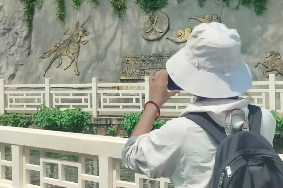 参观完岳阳楼,小组成员出发前往金鹗山孔子公园,园内建有藏书楼、讲学堂、孔圣堂、山长轩等。小组成员还参观了矗立于林间的文昌阁,文昌阁是中国传统祭祀建筑,为保一方文风昌盛而建,门内雕屏上有篇《文昌阁记》,蕴含着“文运兴,国运昌”的意旨。下了文昌阁,小组成员向园中战斗机遗骸前进。这架战斗机是中国的第一种自产战斗机歼-5,拂过其机身,历史的厚重感透过指尖,传至心底。