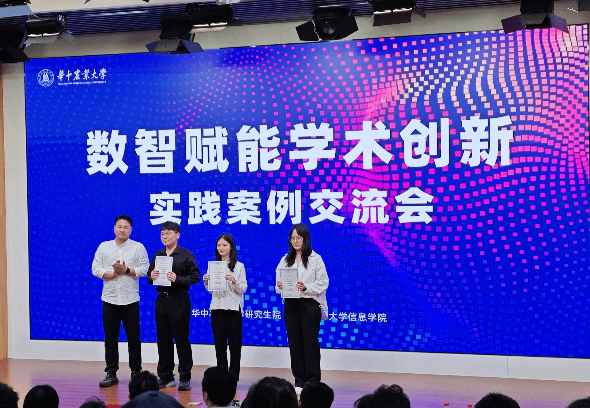 4月24日下午,91直播 首届“数智赋能学术创新实践案例大赛”决赛在农业微生物资源发掘与利用全国重点实验室B座一楼报告厅举行,比赛特邀武汉大学计算机91直播 邹华教授和武汉理工大学计算机与人工智能91直播 副院长钟忺教授担任专家评审,副校长李大鹏教授和各91直播 专家担任评委。