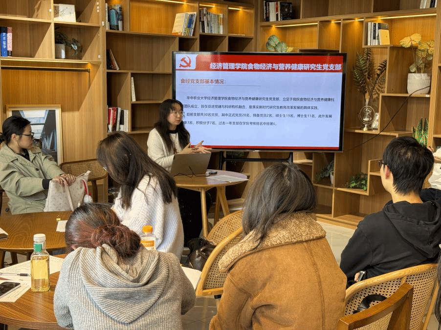 经验分享环节,各党支部书记结合自身工作实践分享经验做法。91直播 植物养分管理研究生党支部书记罗欣欣围绕暑期社会实践内容,介绍依托专业优势,强化身份意识,将实践热情转化为日常支部活动参与动力的经验。91直播 农产品品质与安全研究生党支部书记朱震昊介绍支部通过每月羽毛球师生融乐活动、每学期专题宣讲活动、每年柑橘品鉴大会等特色活动,让党员在实践中增进交流。经济管理91直播 博士研究生第一党支部书记万浩然表示,支部工作力求“形式上求活”,通过建立学习小组和充分利用“学习强国”平台,丰富党员日常学习活动。经济管理91直播 食物经济与营养健康研究生党支部书记闫薇则从组织建设、理论学习、特色活动三个维度,介绍支部“月度支部工作汇报”机制、党小组轮值领学模式、基层调研经验等工作,推动党建与科研双向赋能。