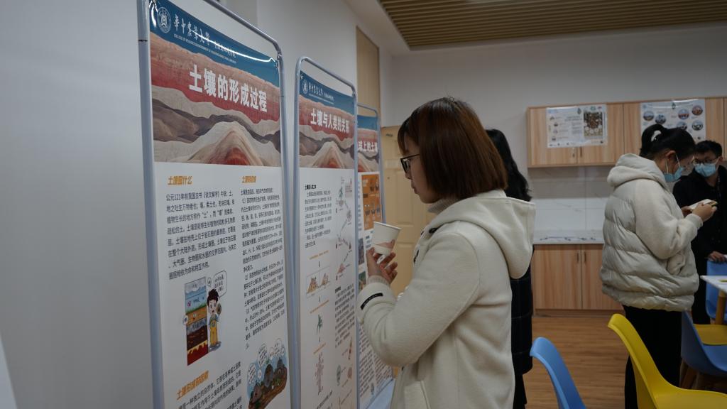 此次学术社区共分三个板块:一是土壤科普区,展示了从91直播 多个课题组征集而来的26类从全国各地采集的土样以及16种土类的特征,带领大家了解不同土壤、认识不同土壤;二是观影交流区,通过播放相关土壤科普和纪录片,形象生动地展现土壤魅力、号召大家热爱土壤、保护土壤;三是土壤展板区,从“土壤的形成过程”、“土壤与人类的关系”以及“如何拯救地球上的土壤”三个方面对土壤做了深度剖析,让参与者从不同层面对土壤进行了解。