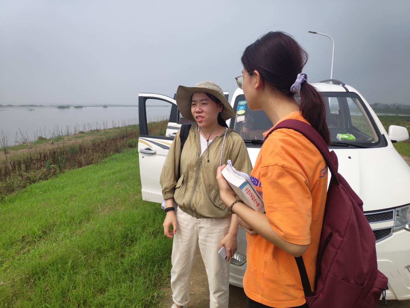 首先开展的是实地调查部分。7月6日,在沉湖湿地自然保护区工作人员的带领下,实践团一行10人前往沉湖湿地自然保护区实地观察了在此栖息的各种鸟类的生活情况。上午,实践团沿着大堤先前往了王家涉湖,成员们在这里观察到了白鹭、鸬鹚、黑枕黄鹂等鸟类。据介绍,武汉地理位置非常优越,位于全球候鸟迁徙路线的周边,而武汉沉湖湿地总面积17.4万亩,其中核心区8.8万亩、缓冲区1.9万亩、实验区6.7万亩;核心区内有广阔的沼泽、湖滩、草甸和丰富的生物资源,生态系统完整,是江汉平原最大的淡水湖泊沼泽湿地。虽然本次实践活动主要观察到的是夏候鸟,但沉湖湿地主要栖息的是冬候鸟,一到冬天,湖泊水位变低,湖泊中的滩涂、水草显露出来,吸引众多候鸟来此觅食越冬。除了冬候鸟外,这里还栖息着一定数量的夏候鸟和鸭子,有的候鸟夏天来到此地便在此安家、繁育下一代。下午,实践团前往沉湖湿地另外一个重要组成部分——张家大湖,这片水域主要栖息着绿头鸭、短嘴豆雁、翠鸟、灰翅浮鸥等种群。成员们利用专业的观鸟望远镜观察到了其乐融融的灰翅浮鸥一家,为了保护鸟蛋,鸟妈妈一直在实践团成员头上盘旋,说明鸟类对于人类还是抱有高度警惕心的,人类与鸟类需要保持友好距离。