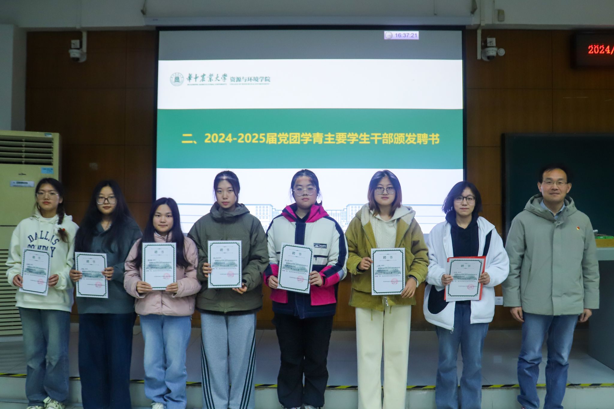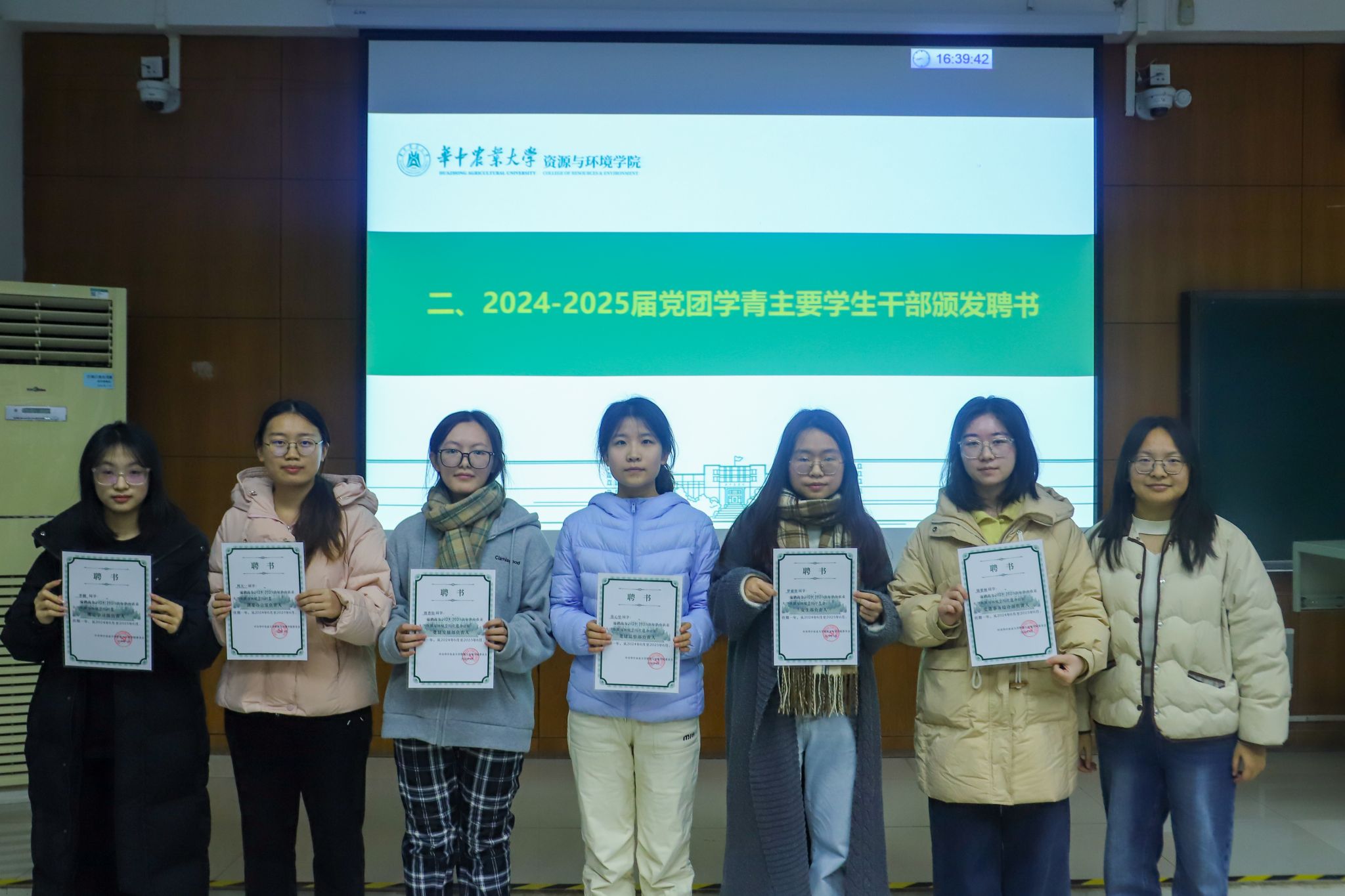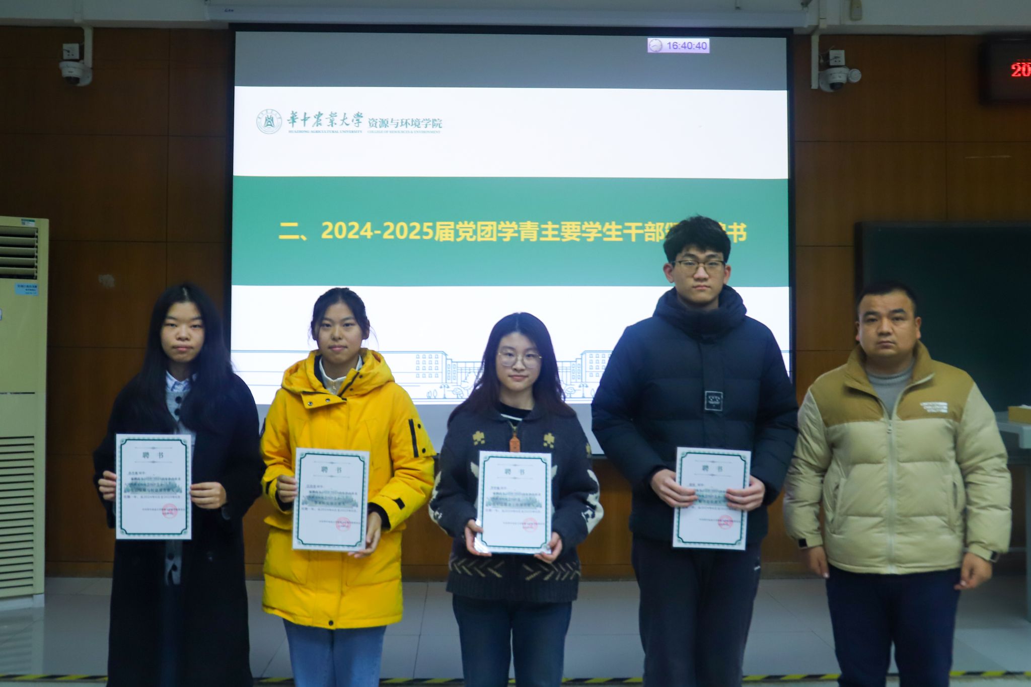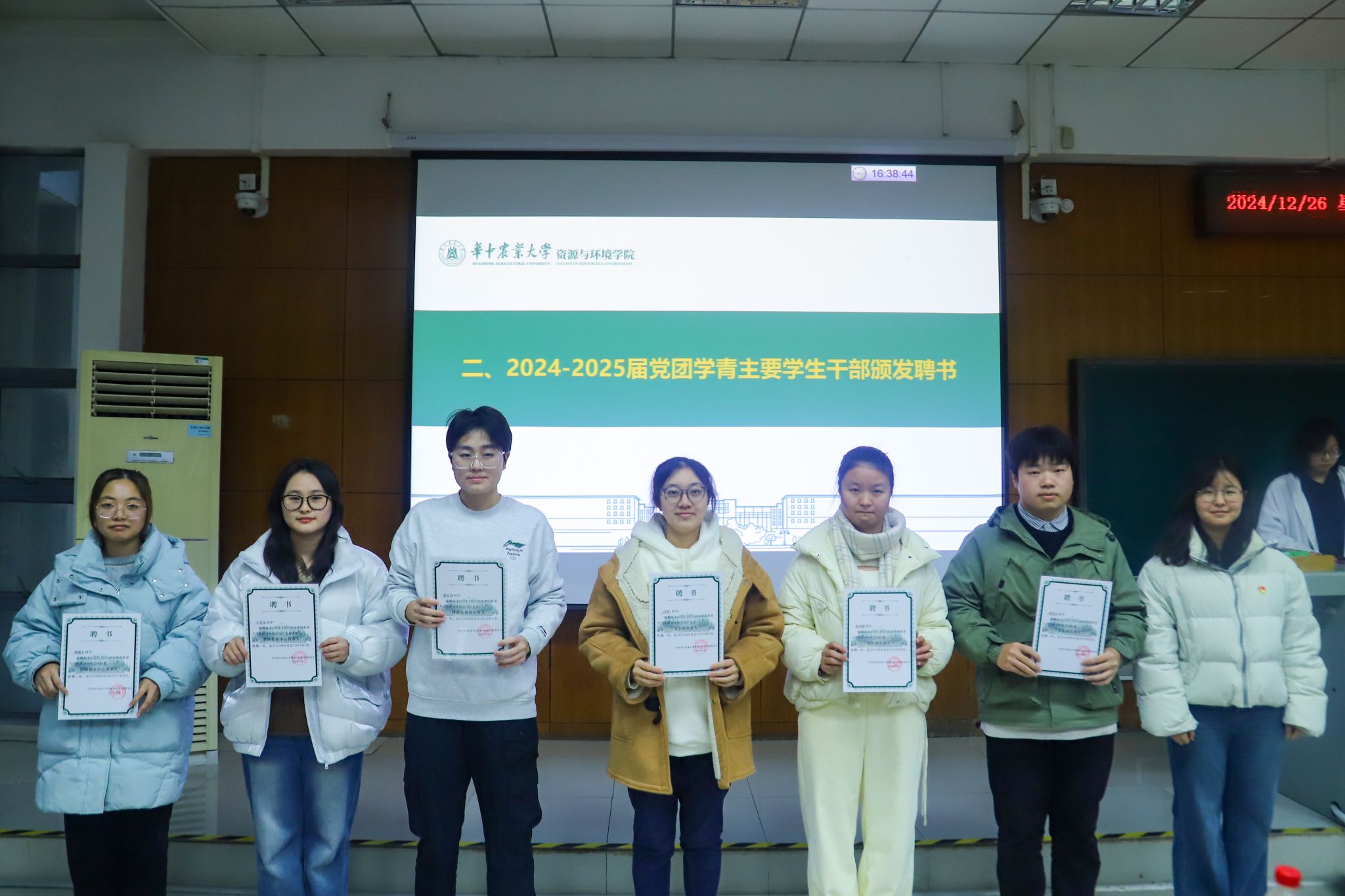 会议开始,江庆介绍了2024-2025届党团学青招新情况。自今年5月25日党团学青组织换届大会开始,91直播 共聘用学生党团学青主席团共7人,同时选拔出了22个优秀学生成为了91直播 下设的学生组织各部门的负责人。后续通过各项面试,共有98名同学成为了部门工作人员;从24级学生中选出了105名优秀的学生成为了各部门的志愿者。最终于11月底形成了共包含232学生的新一届2024—2025学生干部组织。并为2024-2025届党团学青主要学生干部颁发聘书。