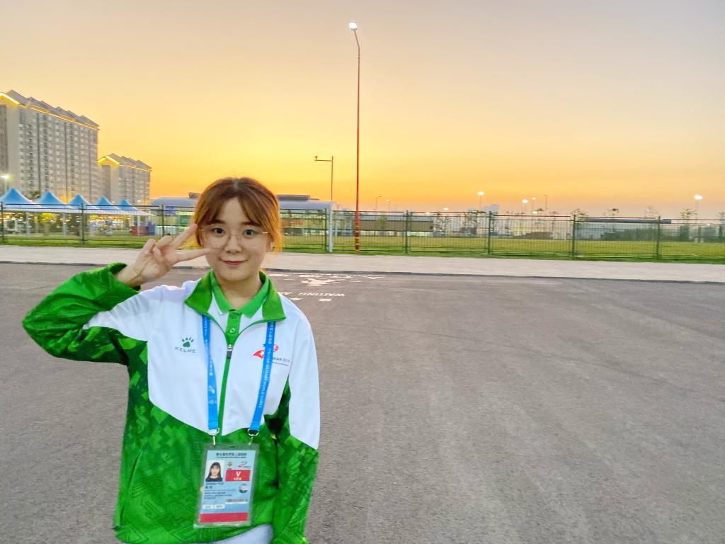 从刚开始对工作的迷茫,到最后的熟悉与热爱。这段随车志愿者的经历令我终身难忘,“track and filed or boxing”、“yes,please”是我说过最多的话了。站在停车场当雨滴滴落在身上的时候,寒冷是身体的第一感觉,但是当运动员们微笑着向我说“谢谢”的时候,温暖将寒冷包围消逝。和蔼的德国大叔送给了我们漂亮的德国徽章,可爱的朝鲜小姐姐热情的邀请我们合照,阳光的荷兰小哥哥认真的学习我名字的读法…在军运村的这几天虽然辛苦,但快乐总也陪伴左右,成为我成长路上难忘的财富。