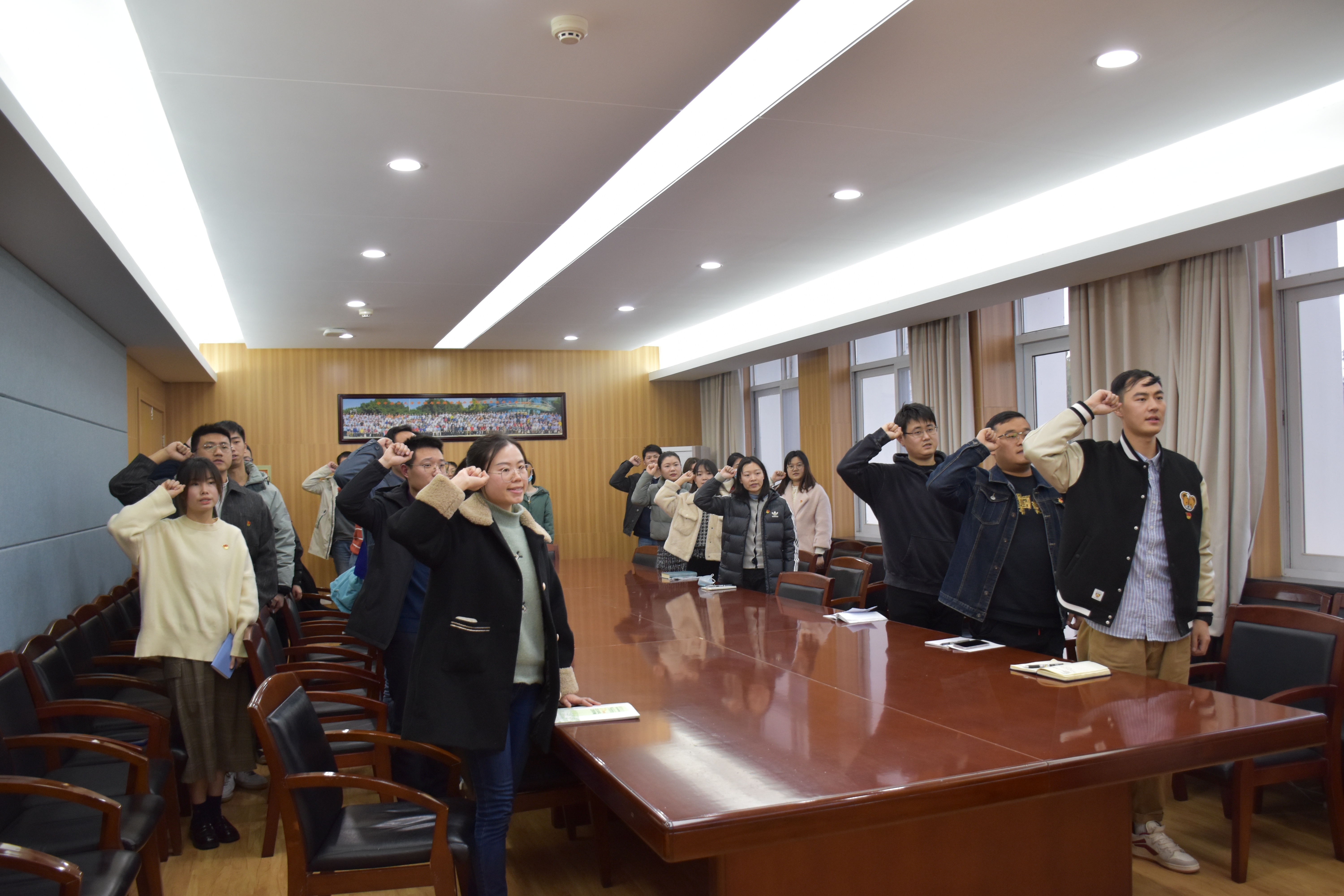 会议开始,与会人员重温入党誓词,宣誓听党话、跟党走的坚定决心和信念。
