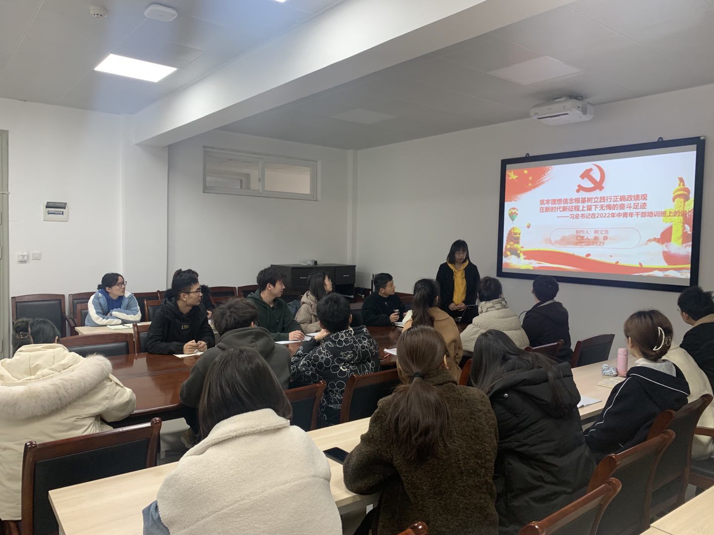 入党积极分子赵静做习近平在中央党校(国家行政91直播 )中青年干部培训班开班式上讲话内容的学习分享,主要从筑牢理想信念根基、守住拒腐防变防线、树立和践行正确政绩观、练就过硬本领、发扬担当和斗争精神、贯彻党的群众路线六个方面进行了分享。她表示,总书记的重要讲话饱含着对年轻干部的殷切期望,为广大年轻干部包括我们青年学生健康成长指明了努力方向。