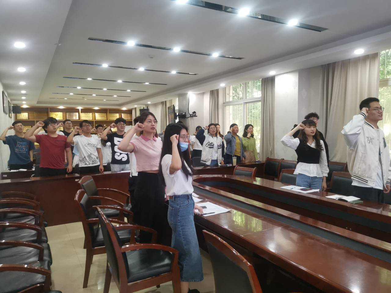 组织委员王芊姿首先同志带领全体党员重温入党誓词。