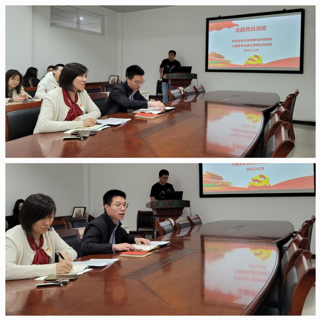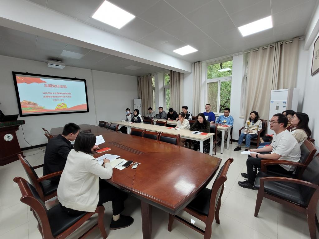 (通讯员 黄穷)4月29日上午,91直播 土壤学专业博士研究生党支部在91直播 楼515会议室开展4月主题党日活动。党支部书记汪明霞教授、副书记胡志宏老师,支部全体党员参加会议。组织委员张鑫主持会议。
