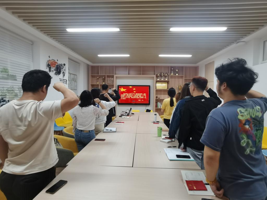 “我志愿加入中国共产党,拥护党的纲领,遵守党的章程……”,伴随铿锵有力的重温入党誓词,主题党日开始。