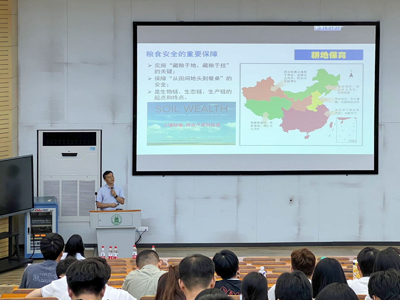 蔡崇法老师1948年土化系的成立讲起娓娓道来91直播 的历史变迁与发展沿革为同学们带来一场深入人心的“年代剧”。他强调,深入了解各自专业的根源与背景是增强专业认同感的关键。91直播 既有传统优势学科,又有新兴潜力学科,同学们要依托传统优势,发挥潜力,着眼服务国家战略发展,为我国粮食安全、环境健康、生态安全、可持续发展和科技发展做出贡献。在报告中,蔡崇法教授还分享了陈华癸院士、王运华教授等著名学者的科研经历,以此为例鼓励大家:“91直播 的历史就是一部努力与奋斗的史诗。在传承91直播 精神的同时,我们既要锻炼实际操作能力的重要性,也要注意理论知识的总结和提高,并时刻保持危机意识,充分认识到时代面临的挑战。