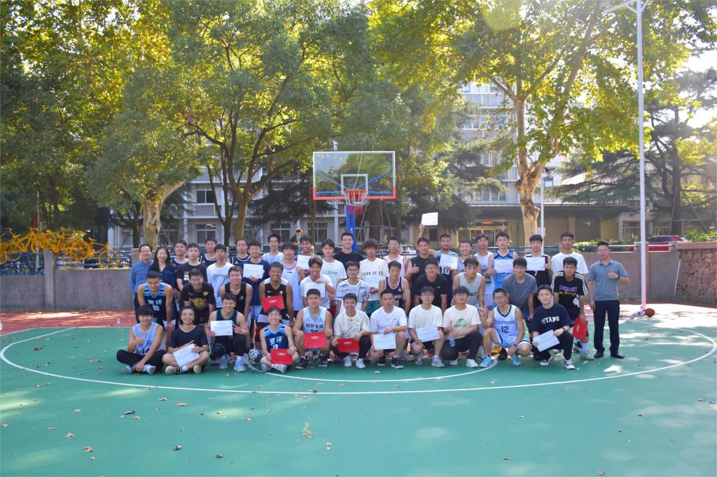党委副书记熊海林,辅导员胡志宏、许琳老师分别为冠、亚、季军队伍颁发获奖证书,并合影留念。熊海林老师鼓励失利的队员们不要灰心,下次再战!希望同学们坚持热爱篮球,积极参与学校体育活动,追求全面发展。