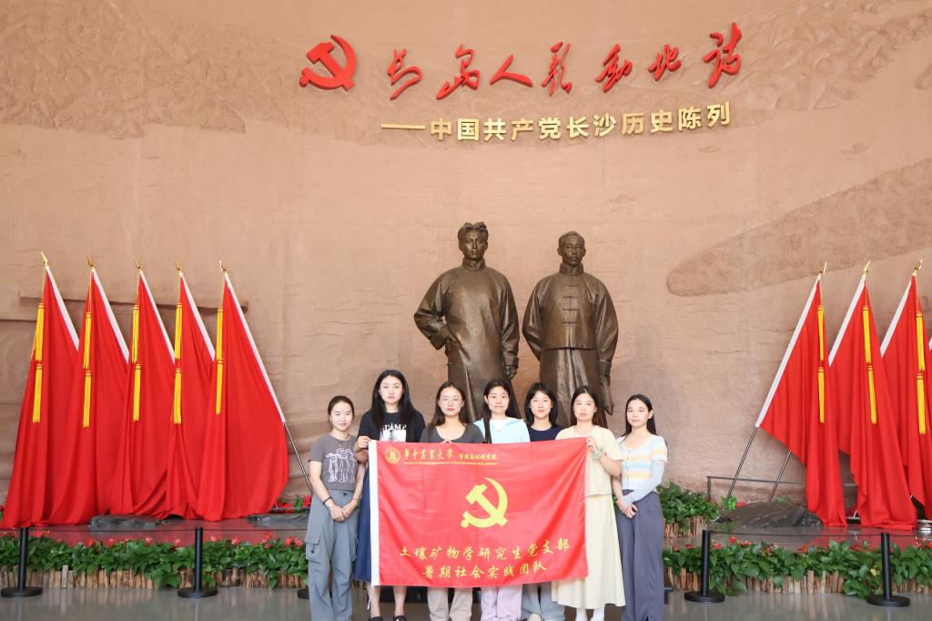 (通讯员:付一晟、秦尚彬、李博涵)7月19日至21日,91直播 土壤矿物学研究生党支部暑期社会实践团队队长尹慧琳携十名队员前往湖南省长沙市、韶山市,在韶山毛主席故居、湖南第一师范91直播 、岳麓书院、新民学会成立会旧址、中国共产党长沙历史馆等红色旧址开展“长沙韶山迹永存,红色精神代代传”实践调研活动,旨在深刻领悟红色精神的内涵和价值,激发新一代青年的爱国热情和奋斗精神,使红色精神在新时代得到创造性的传承和发展。