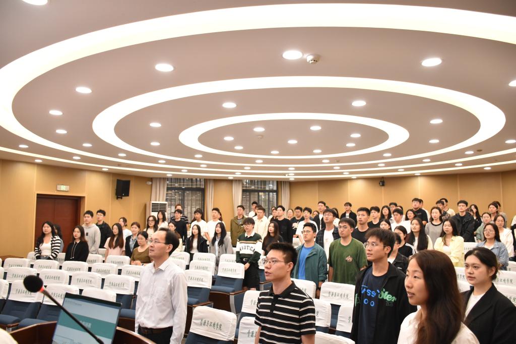 开班仪式在国歌声中拉开帷幕。胡志宏首先介绍培训班开班背景和主要培训安排,鼓励大家不断学习,拓宽视野,通过学习、实践、再学习、再实践的循环过程,不断提升自己的工作能力与综合素质。随后,学员代表、研究生工作办公室兼职辅导员、研究生党建办公室副主任谭晨冉发言,她以“笃行将致远,磨砺出芳华”为主题,以自己作为一名学生骨干的成长经历为切入点,分享体会感悟。谭晨冉表示,作为学生骨干,责任在身,使命在前,我们只有实现自我成长,才能更好的服务同学,这个过程并非一帆风顺,但终会绽放芳华,我们应以青春之名,践行使命,求真务实,勇于担当,将理论知识转化为实践力量,让青春与智慧在服务他人中焕发绚丽光彩。