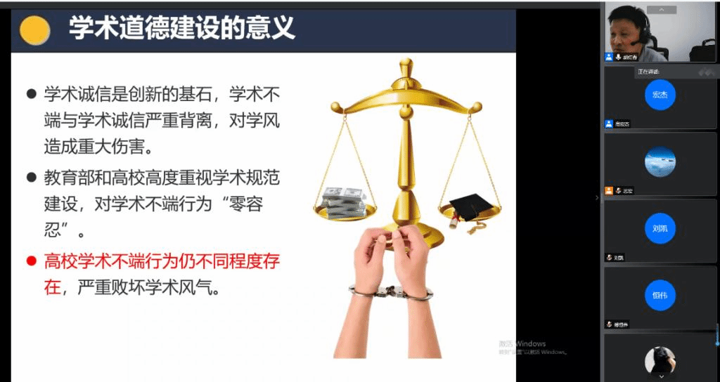 (通讯员 高宏杰)为增强研究生新生的科学道德精神和学风自律意识,优化91直播 学术诚信环境,培育优良学风,9月17日上午,91直播 邀请胡红青教授线上面向研究生新生开展学术道德与学术规范教育,研究生辅导员胡志宏主持会议。