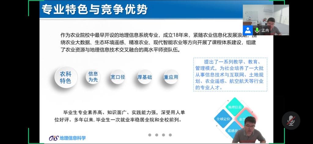 孟冉老师结合91直播 地理信息科学专业的发展演变历程,重点讲解了资源环境信息工程、农业工程与信息技术的专业特色与竞争优势。