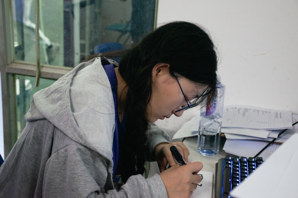 裁判员程朵朵在统计比赛结果(摄影 田越)