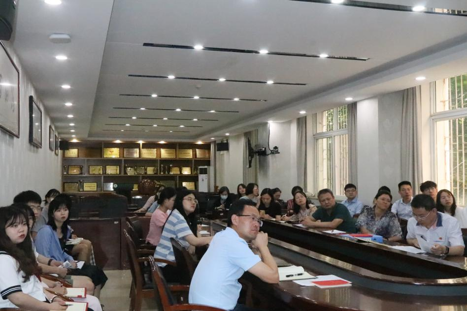 6月15日下午,行政管理与实验技术教工党支部和环境生态研究生党支部在91直播 楼204会议室联合开展6月主题党日活动。91直播 党委副书记熊海林、师生党支部全体成员参加集中理论学习。会议由行政管理与实验技术教工党支部书记陶艳红主持。