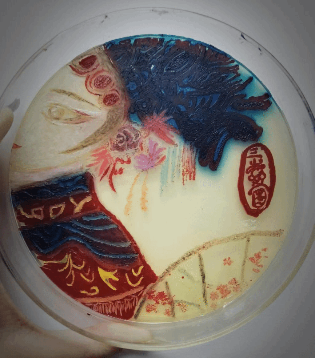 赛后,农资2001班的孙若琳这样谈到:“京剧是中华传统文化,以形传神,形神兼备,一字一句,娓娓道来;篆刻,是书法和镌刻结合的产物,也是汉字所特有的艺术形式。以京剧人物与篆刻文字为画面主体,是艺术的交融,也是文化的碰撞。这次微生物绘画比赛,我们在实践中了解微生物的生长过程,对微生物的结构特性有了进一步的学习。用微生物进行作画是我们之前没有接触过的,这个过程是困难的,但也是十分神秘、有趣的。这次比赛我们不仅收获了微生物相关专业知识,也更锻炼了团队合作意识,受益匪浅!”