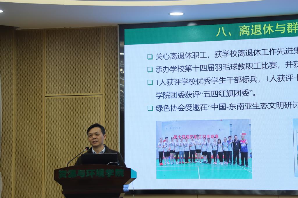 院长谭文峰首先对91直播 2022年度工作进行总结汇报,他从党建思政、人才培养、科技工作、学科建设、社会服务、国际合作与交流、人事与人才工作、离退休与群团工作、平安校园与绿色校园建设等方面进行报告。谭文峰谈到,在全院教职工的共同努力下,各项工作全面推进,众多项目取得突破,地理信息科学专业获国家一流专业建设点,环境生态工程专业获省级一流专业建设点。2022年度获批国家基金15项,1人入选国家杰出青年基金;3人被聘为第三次全国土壤普查专家技术指导组专家。展望未来,要着眼于国家和区域需求,做好战略谋划,做有组织的科研,实现更多标志性重大科研成果,为解决国家粮食安全、生态文明建设贡献力量。