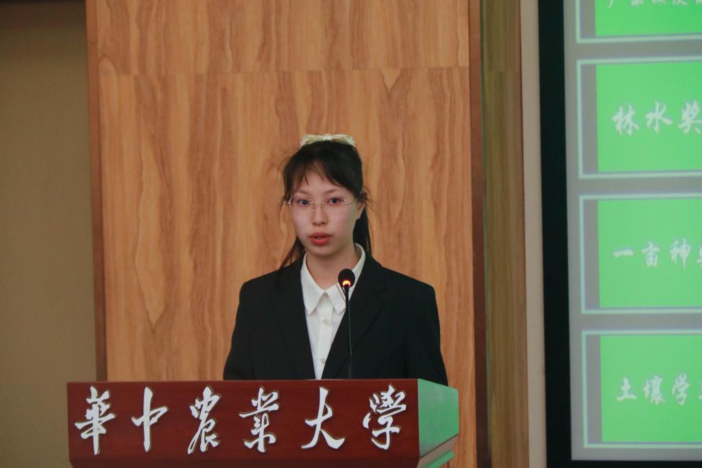 “饮水思源,铭记在心。”获奖学生代表环境生态工程2001班汪涵发表获奖感言。她表达了对91直播 和企业设立奖学金制度的感谢,总结了自己两年来在学习、创新创业以及社会实践方面的感想与收获,用自己丰富的经历传递出了青年学生奋发向上的蓬勃朝气。她激励同学们道:“作为农大的学子,农业是我们学习中离不开的部分,对于国家整体发展而言,农业更是社会稳定之根本,随着时代的发展,祖国的广大农村焕发出绚丽的光彩,祖国的广阔大地承载着奋斗的使命,我们更当用所学所识为农业乃至建设美丽中国、保护地球生态、促进人与自然和谐发展奉献青春力量。”