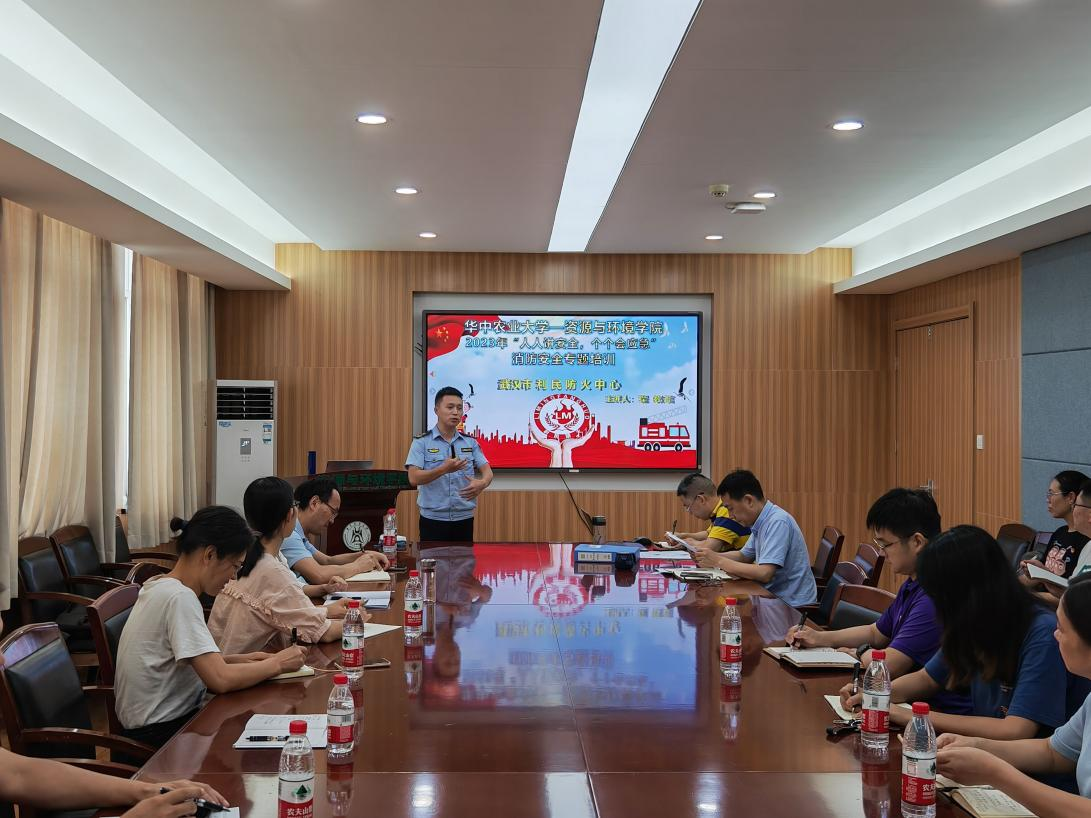 7月13日,91直播 在主楼315会议室开展“人人讲安全,个个会应急”消防安全专题培训,武汉市利民消防中心教官程龙应邀进行授课培训。91直播 党委书记吕守华、党委副书记熊海林、行政实验全体人员参加活动。