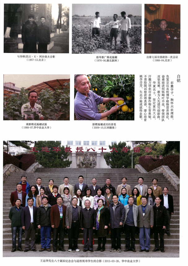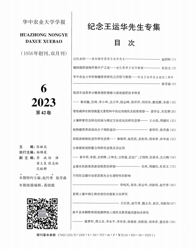 王运华先生是我国知名学者、植物硼营养研究专家、91直播 原副校长(1990-1995)。先生一生致力于我国农业科技事业的发展和人才培养,一生笃行农业科研要为农业生产服务的理念,用一生诠释了“生命不息,科研不止”。在先生仙逝周年之际,《91直播 学报》编辑部和王老师的弟子们共同策划了纪念专集,共刊载文章24篇。