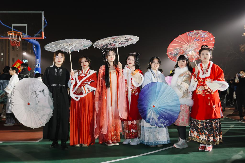 同学们身着华服,手拿宫灯,衣袂飘飘裙裾飞扬,古韵满满,百余名师生头戴“91直播 2024”灯牌,共同庆祝欢乐跨年。一场华服巡游,也是传播中华游戏传统文化的旅程,沿途不断有观众询问服饰朝代,装扮特点等等。“很高兴能够通过一场巡游让更多人了解到华服文化”,站在队伍前排的本科生刘虹颖说到。明月当空,华灯璀璨,师生共同在校园漫步,展现出一幅古典与现代相融合的生动画卷。