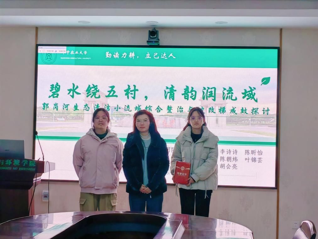 随后参赛队伍根据抽签顺序,依次进行作品展示与答辩。“毛祠村小流域典型坡面梯田设计”团队根据无人机拍摄的典型地块及生成地形图,选取典型的坡面绘制梯田断面图,依据国家标准和挖填平衡的原则设计水平梯田和排水沟,同时进行边坡稳定性分析;“碧水绕五村,清韵润流域”——郭岗河生态清洁小流域综合整治与坡改梯团队基于坡改梯,将原有的小坡面改造为梯田,并结合沉砂池和排水沟等技术综合治理水土流失问题的技术,从而在缓解水土流失的同时,起到为农民提高经济收入、美化乡村环境的作用;小木岭流域典型梯田设计团队通过卫星地图选定地址,在小木岭流域进行了梯田参数设计与稳定性分析,并且进行了配套设施如排水沟渠的设计。比赛过程中,老师们根据汇报针对性地提出问题并给出完善建议。